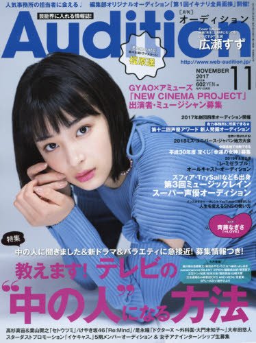 2017-10-03 Audition(オーディション) 2017年11月号 立ち読み 雑誌 表紙:広瀬すず 発売日:2017年9月30日(土) 出版社:白夜書房 価格:¥650(税込) Amazon.co.jpの詳細へ 「グラビア」 広瀬すず 森川葵 SILENT SIREN 堀田真由 昆夏美 齊藤なぎさ(=LOVE) 「教えます!テレビの“中の人”になる方法」 けやき坂46(井口眞緒/潮紗理菜/加藤史帆/佐々木美玲/東村芽依) 是永瞳 「人生を変えるSNSの使い方」 柴田あやな わたなべ麻衣 nanachannel 「第1回『イキナリ全員面接』in編集部」 「BACSエンターテイメント新人募集」 「笑う門にはフクきたる!お笑いスクール最前線!」 「蛸山めがねのスターダスト全員面接オーデレポート」 「平成30年度 宝くじ『幸運の女神』募集」 「十二回声優アワード 新人発掘オーディション」 「2018ミス・ユニバース・ジャパン地方大会」 「女芸人No.1決定戦『THE W』出場者募集」 「鈴鹿サーキットクイーン第40期生募集」 「Elements」 福原遥 「はじまり。」 知英 Amazon.co.jpの「Audition(オーディション) 2017年11月号」の詳細へ
