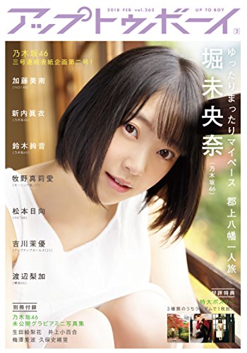 2017-12-25 UP TO BOY(アップトゥボーイ) 2018年2月号 Vol.262 立ち読み 雑誌 付録:ミニ写真集/ポスター/ 表紙:堀未央奈(乃木坂46) 発売日:2017年12月22日(金) 出版社:ワニブックス 価格:¥1,250(税込) Amazon.co.jpの詳細へ 「グラビア」 堀未央奈(乃木坂46) 新内眞衣(乃木坂46) 鈴木絢音(乃木坂46) 渡辺梨加(欅坂46) 加藤美南(NGT48) 松本日向(HKT48) 吉川茉優(アップアップガールズ(2)) 牧野真莉愛(モーニング娘。'17) 「付録・ミニ写真集The Purple Chronicle」 生田絵梨花(乃木坂46) 井上小百合(乃木坂46) 梅澤美波(乃木坂46) 久保史緒里(乃木坂46) 「付録・両面特大ポスター」 Amazon.co.jpの「UP TO BOY(アップトゥボーイ) 2018年2月号 Vol.262」の詳細へ